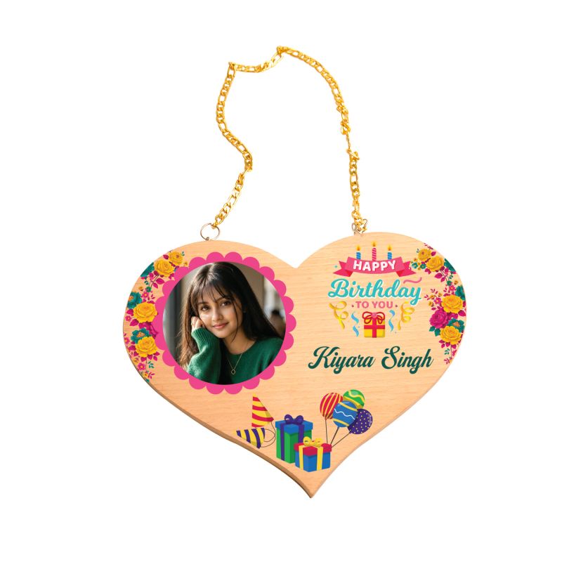 Personalized Happy Birthday Heart-Shaped Wooden Hanging Plaque Custom With Name & Photo Birthday Gift for Girls, Daughters, Sister, Wife and Best Friends