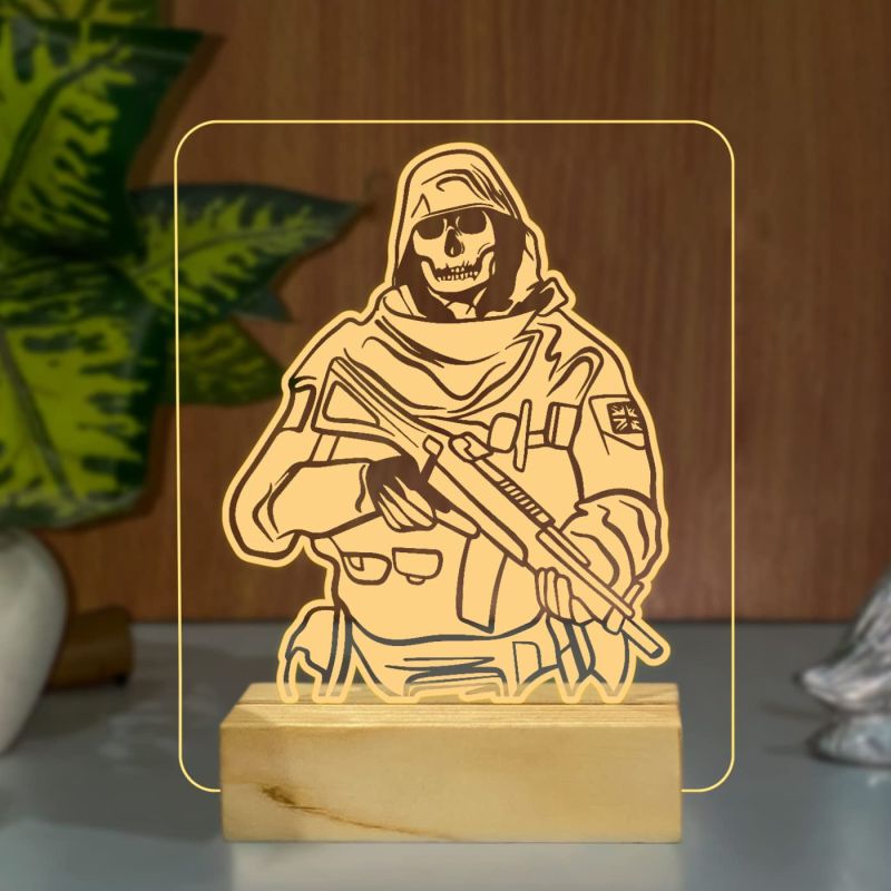 3D Illusion Call of Duty Ghost Night lamp Skull Led Decor Table lamp (Warm White Light)