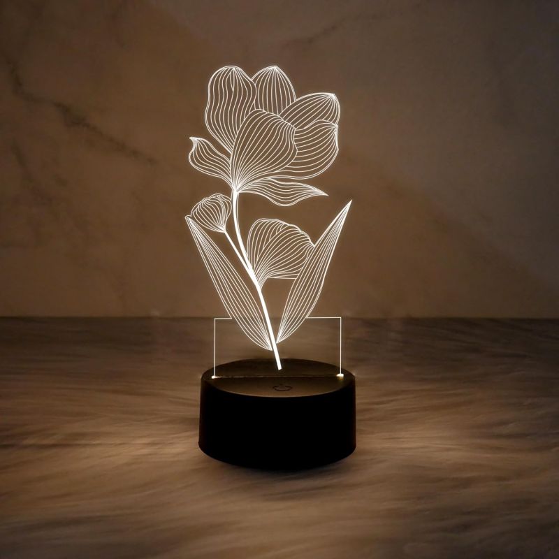 3D Illusion Flower Design Night Lamp for Home & Office Decor Light Unique Bedside Desk Table Lamp with Warm White Light & USB Powered
