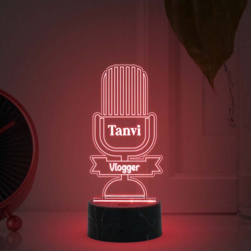 3D Illusion Vlogger Microphone Design Night lamp with Multicolored Light Customized with Name Gift For Kid