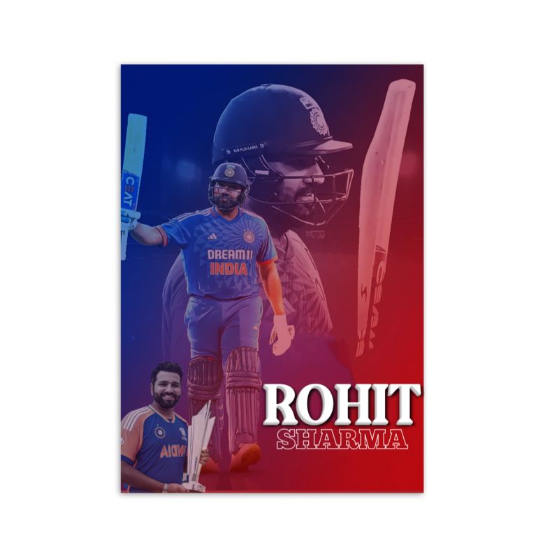 Acrylic Cricketers Player Photo Frame For India Cricket Sports Studio Cafe Wall Frame with 3D Text Gift For Cricket Player, Fans & Achievers Wall Art Decor For Bedroom, Office & Gaming Setup (Rohit Sharma)