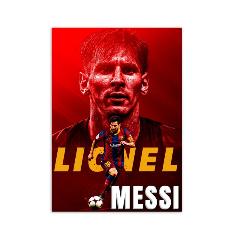 - Features a powerful image of football legend Lionel Messi, inspiring fans and players with passion, dedication, and excellence.