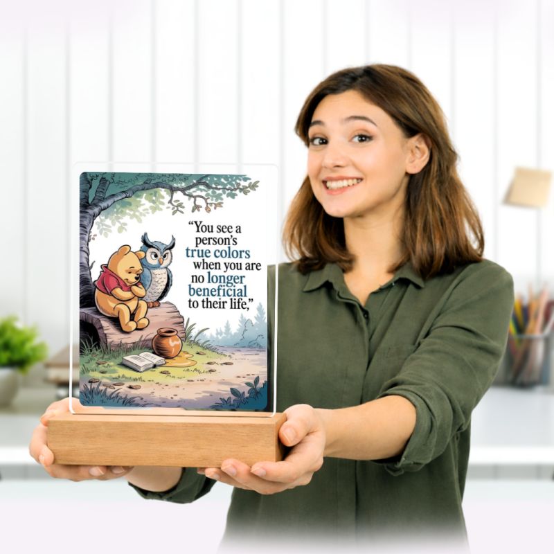 "Be yourself, always! Display this wooden-base acrylic plaque as a daily reminder to embrace your true colors."