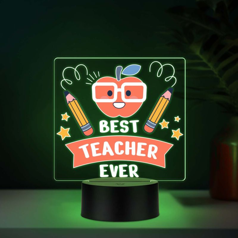 Best Teacher Ever Acrylic LED Lamp with UV Print – Multicolor Gift for Teachers Day, School Teacher Gift Unique Teacher Appreciation Day Gift
