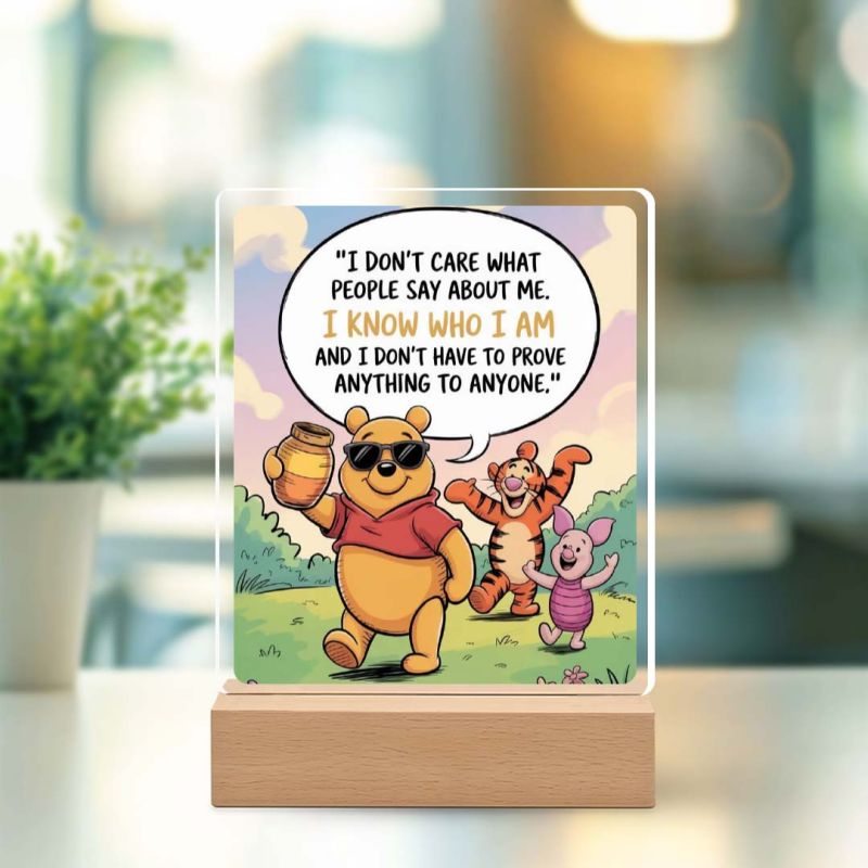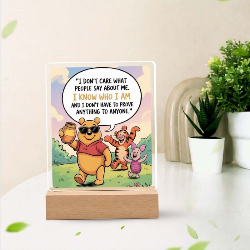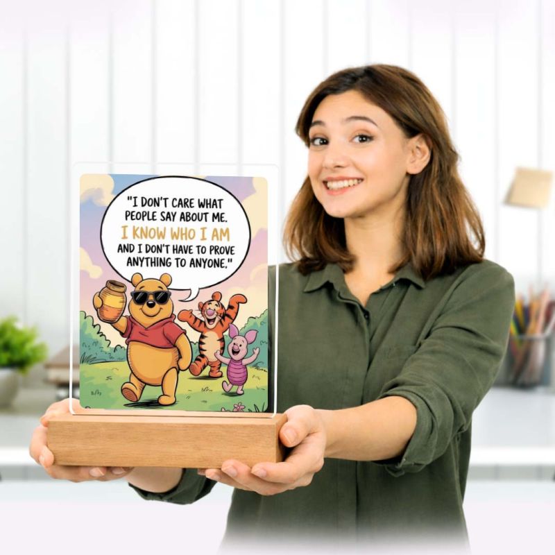 - Sleek acrylic plaque with a sturdy wooden base