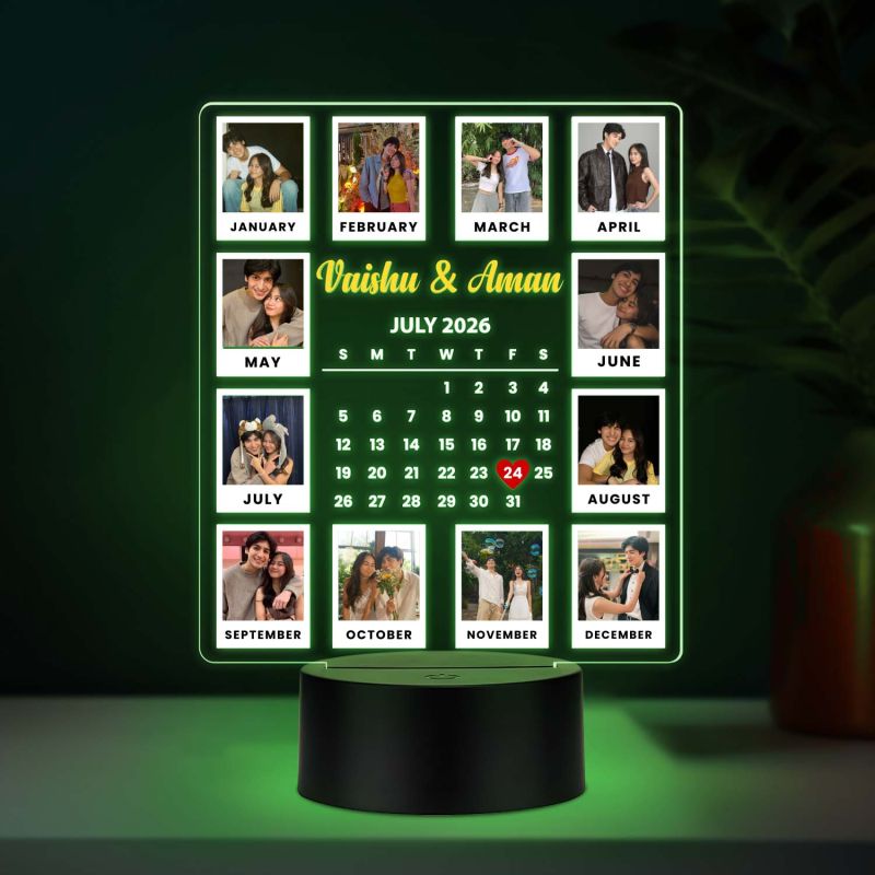 Calendar Couple Photo UV Print Lamp with Multicolored Light Unique Anniversary, Birthday, or Wedding Gift for Couples, Wife, Husband