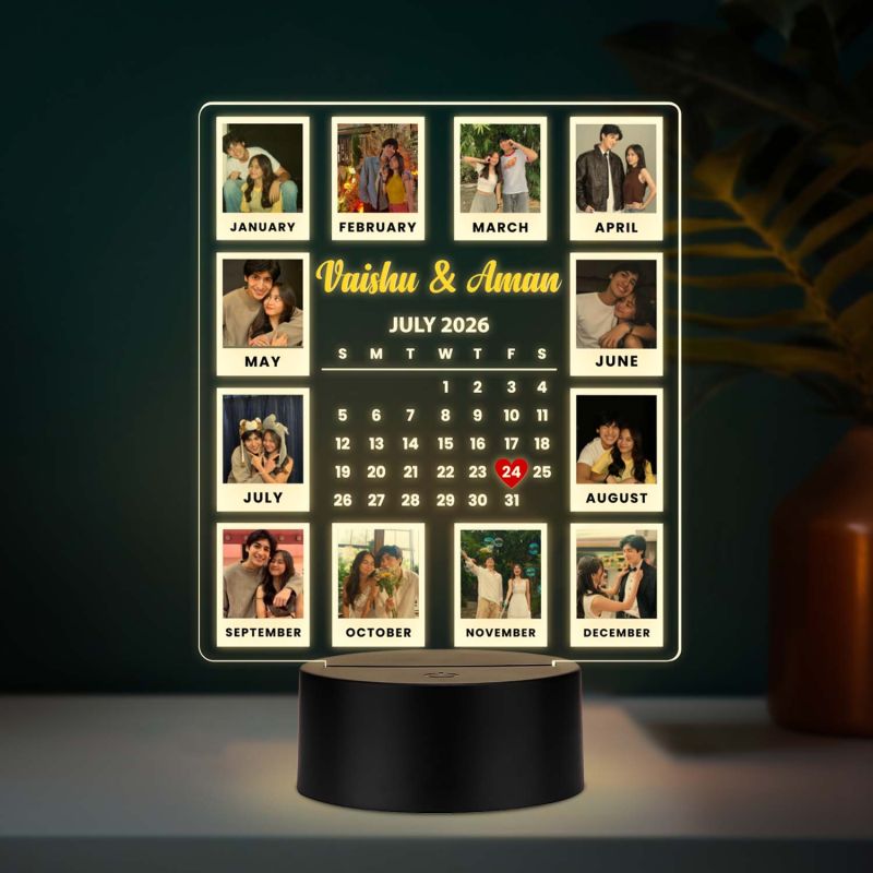 Calendar Couple Photo UV Print Lamp with Warm White Glow Light Unique Anniversary, Birthday, or Wedding Gift for Couples, Wife, Husband,