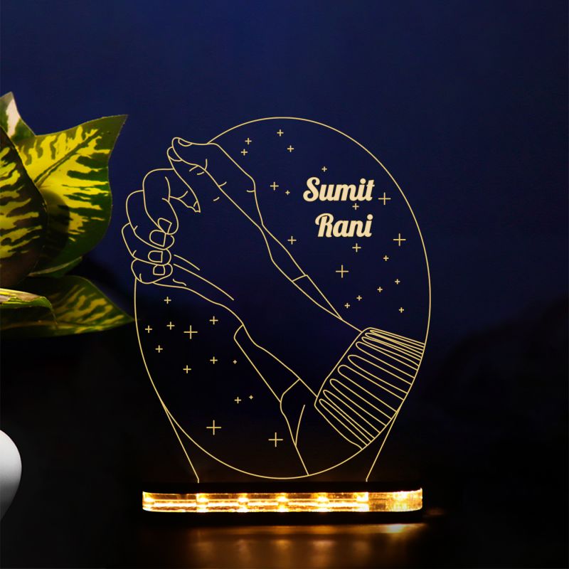 - Acrylic desk table lamp featuring a design of a couple's hands, symbolizing unity and love.