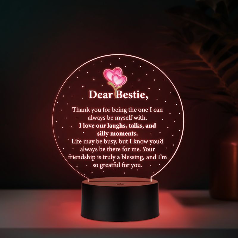 Dear Bestie LED Night Lamp with Heartfelt Friendship Message Automatic Color Changing Light Birthday Gift for Bestie