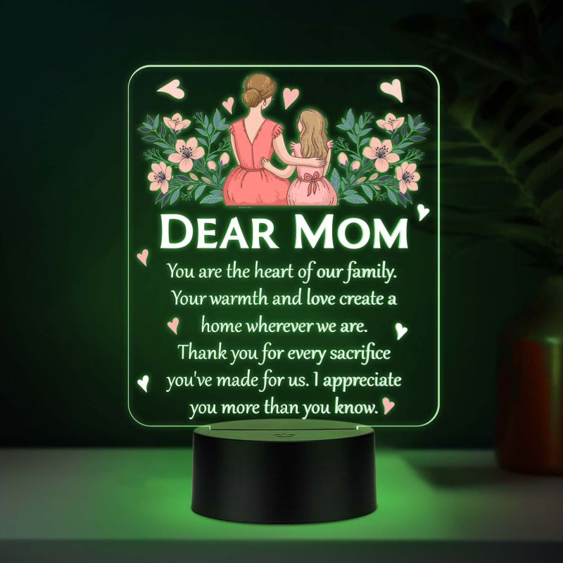 Dear Mom Acrylic LED Lamp with UV Print – Multicolor Night Light Mother’s Day & Birthday Gift
