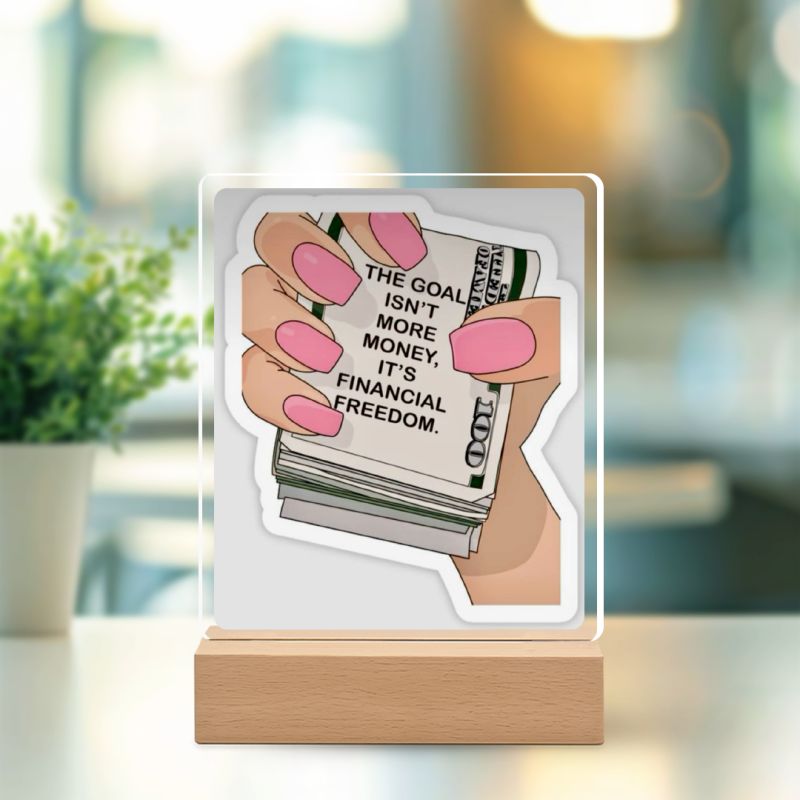 Financial Freedom UV Print Lamp Plaque – Motivational Desk Decor for Women t inspires confidence, ambition, and empowerment every single day.