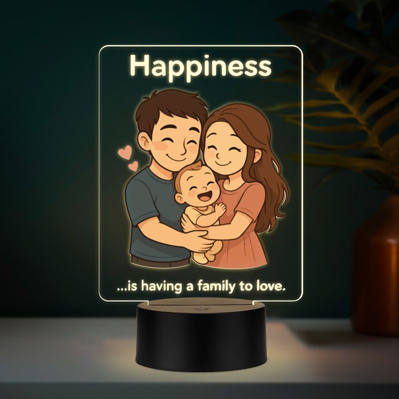 Happiness is Having A Family to Love Quote Engraved LED Night Lamp with Warm White Light Gift for Parents Bedroom Decor Light