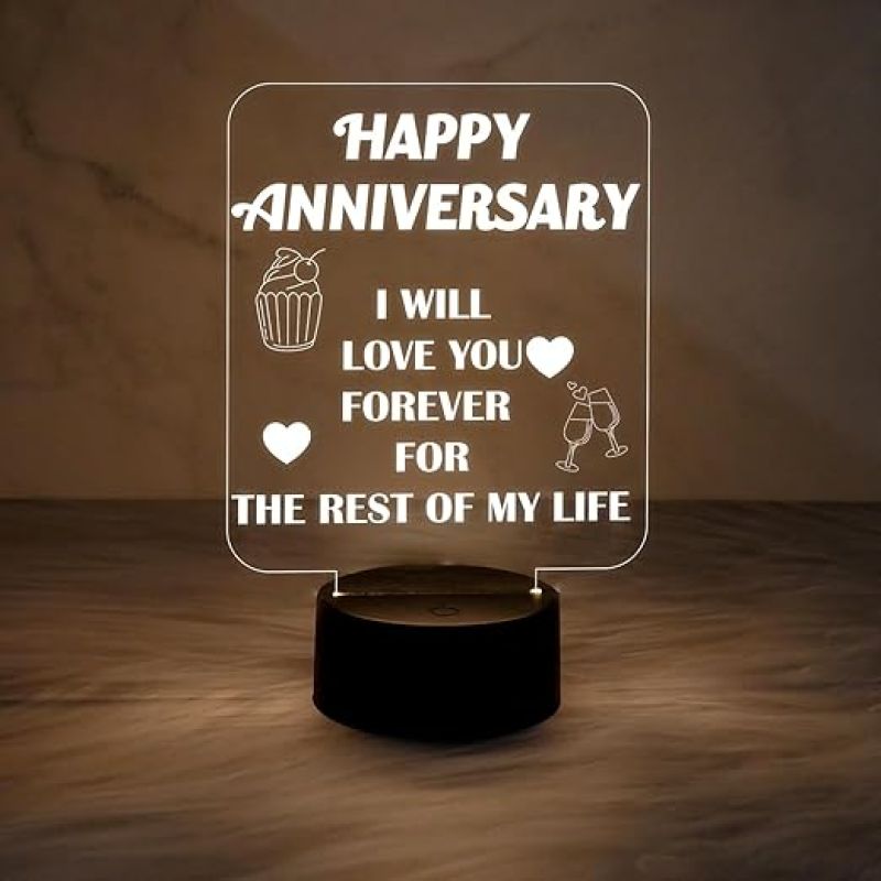 Happy Anniversary 3D Illusion LED Table Lamp Lamp for Couple Anniversary Gift for Husband Wife Warm White Light