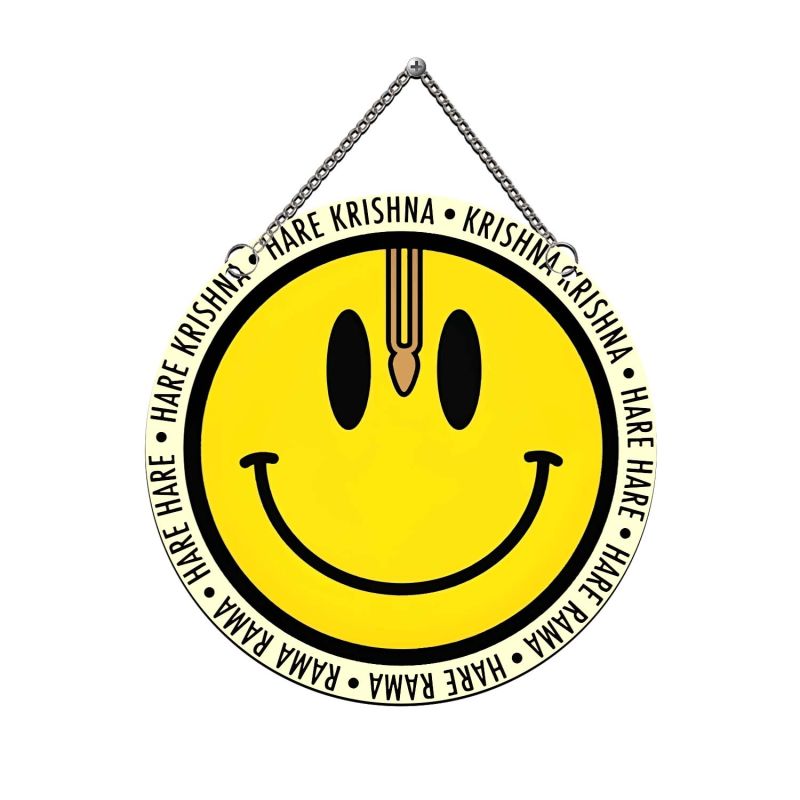 Hare Krishna Hare Rama Mantra With Smiley Face Wall Hanging Decoration for Home Entrance, Pooja Room, and Office Meditation Spaces Decor Positive Vibes Spiritual Art