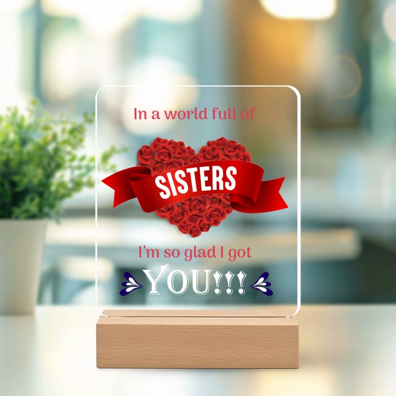 I’m So Glad I Got You” Acrylic Heart Plaque – Inspirational Birthday Gift for Sister with Wooden Base