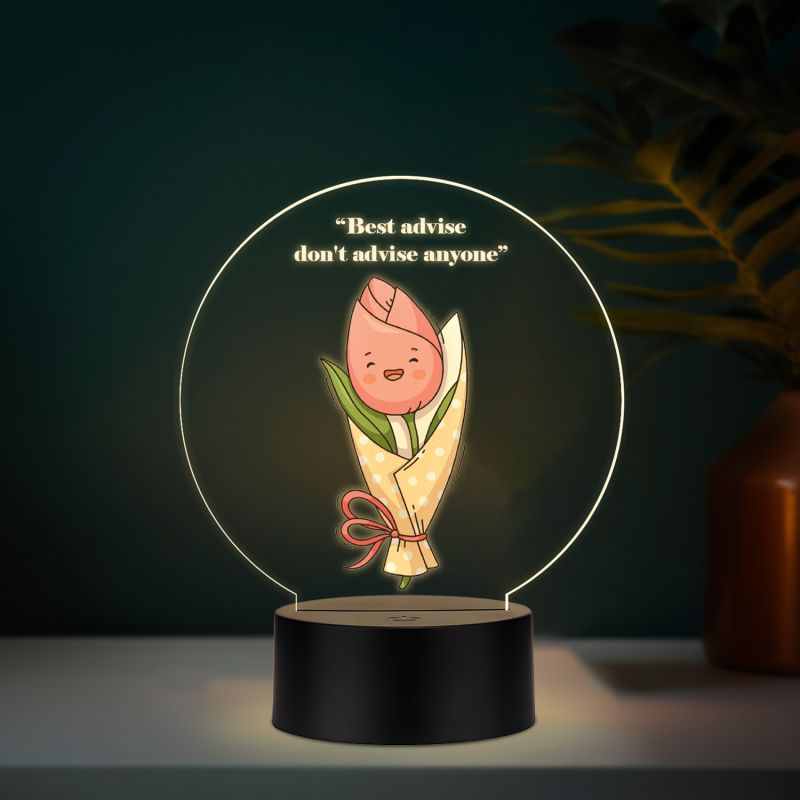 Inspirational Quote LED Night Lamp with Warm White Light Flower Design Theme Decorative Acrylic Light Motivational Study Table Lamp (Best Advise Don't Advise Anyone)
