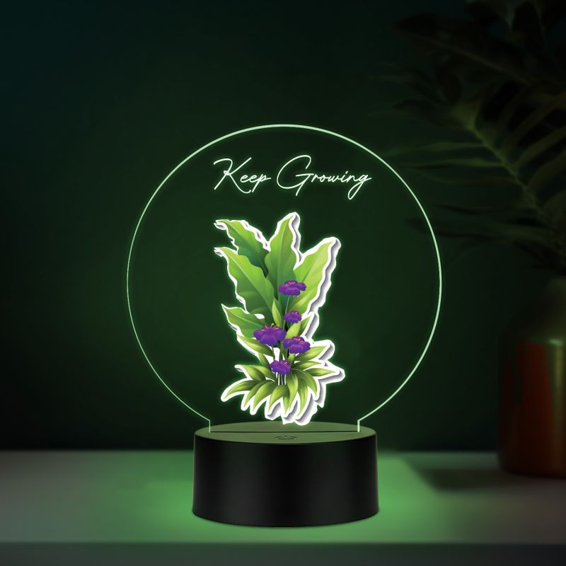 Inspirational Quote LED Night Lamp with Warm White Light Flower Design Theme Decorative Acrylic Light Motivational Study Table Lamp (Keep Growing)