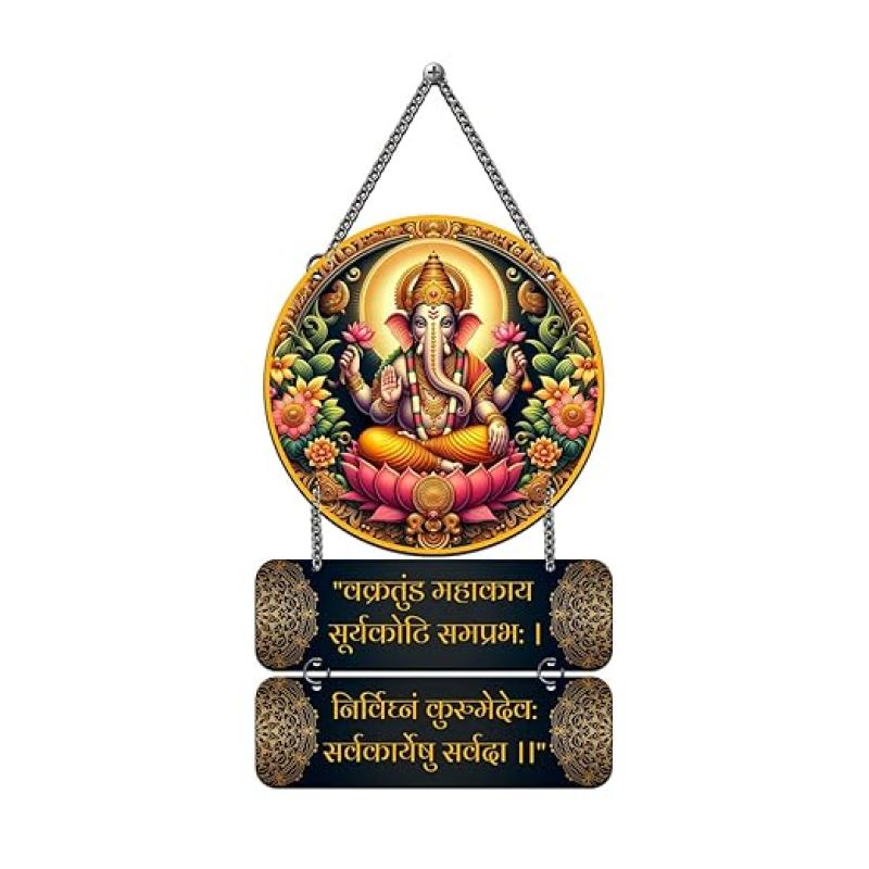 - Divine Wall Décor: Beautiful Lord Ganesha Mantra Wall Hanging featuring the sacred “Vakratunda Mahakaya” Sanskrit shloka.