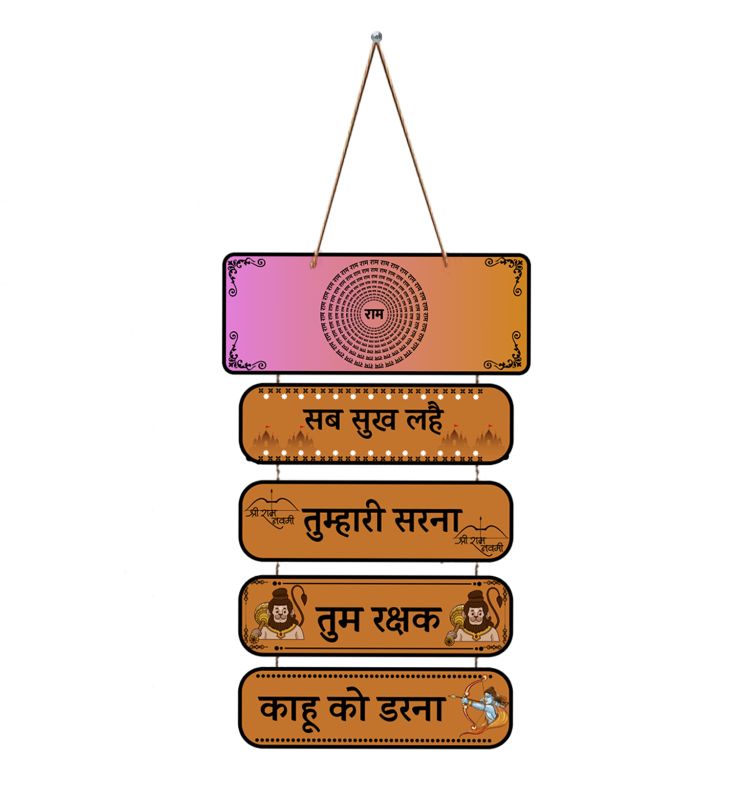 Mantra Quotes Printed Wall Hangings Home Decor Items for Living Room Bedroom Pooja Room Home & Office Hindu God Wall Art Religious Wood Hanging (Hanuman Mantra 1)