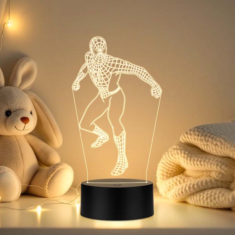 - The Spider-Man Night Lamp boasts a unique and captivating design that features the iconic web-slinger himself, Spider-Man, captured in intricate detail on a high-quality acrylic sheet.
