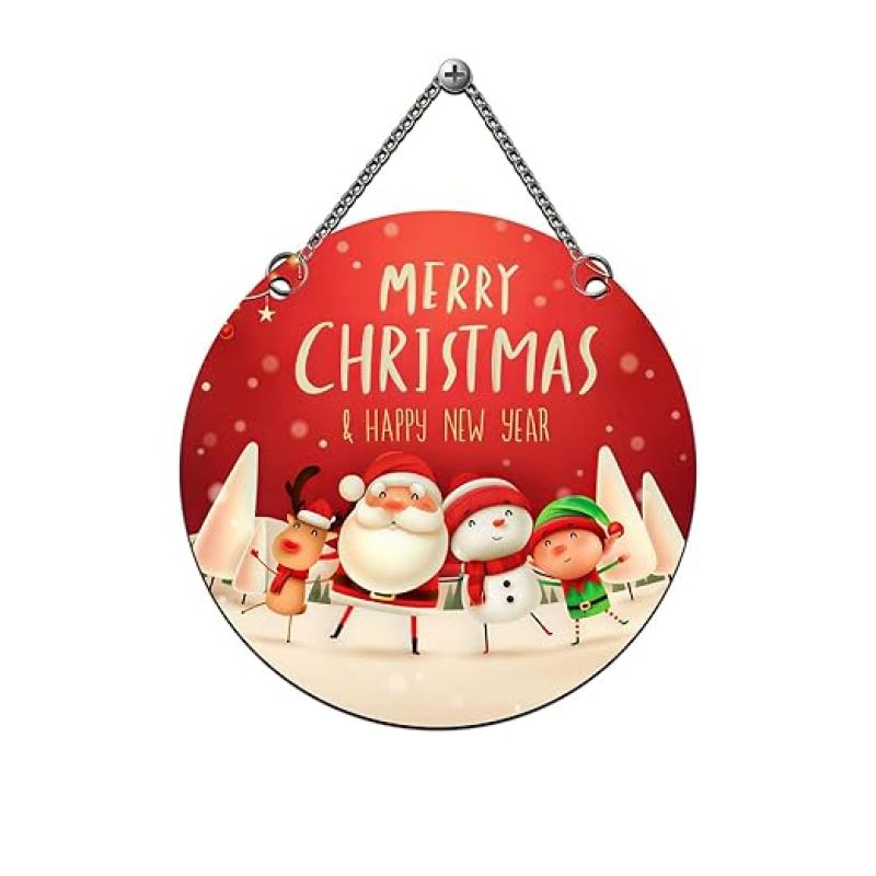 Merry Christmas & Happy New Year Printed Wall Hanging Decorative Item for Home Office Living Room Bedroom Christmas Decorative Items & Gift