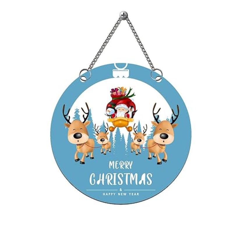 Merry Christmas & Happy New Year Wooden Wall Hanging for Decoration Santa Claus Snowman Reindeer Wall Hanging Decor for Home & Office Gift for Christmas