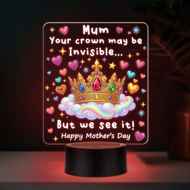 Mom Invisible Crown Quote Acrylic LED Lamp with UV Print – 7 Color Changing Night Light USB Powered Mothers Day Gift