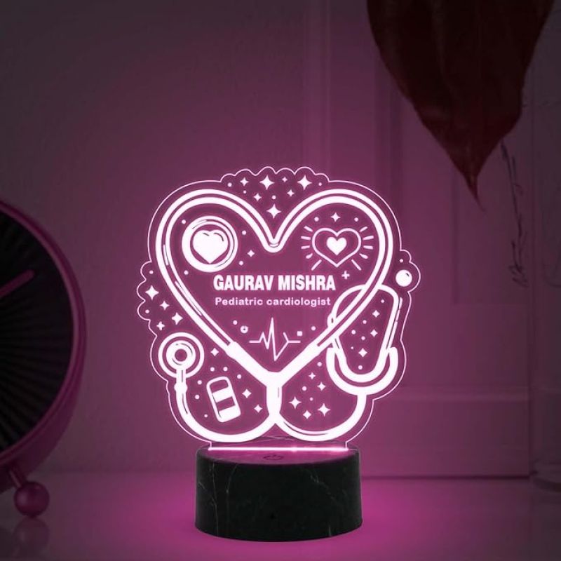 Pediatric Cardiologist Doctor Night Lamp with Automatic Color Changing Light Customized with Name Gift for Cardiologist Future Doctor Clinic Decor