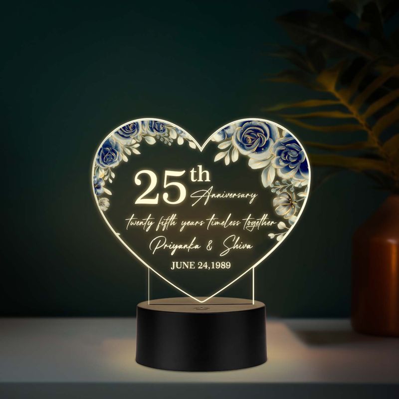 Personalized 25th Anniversary Acrylic LED Lamp with UV Print – Custom Names & Date Silver Jubilee Gift Warm White Light