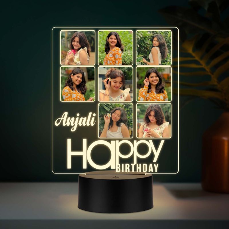 Personalized 3D Acrylic Photo Lamp with LED Base Customized Birthday Gift for Girls & Women, Features 8 Photo Collage with Name, Night Light for Bedroom Decoration Warm White Light