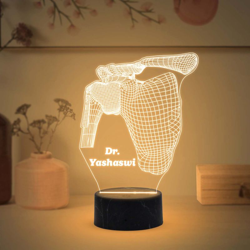 Personalized 3D Illusion Shoulder Joint LED Lamp Gift for Orthopedic Surgeon Medical Decor Light with Warm White Light Thankyou Gift for Doctor