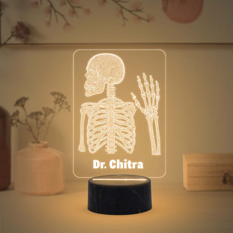 Personalized 3D Illusion Skeleton Lamp Gift for Radiologist Doctor Gift for Medical Students Doctor Clinic Desk Table Lamp with Warm White Light