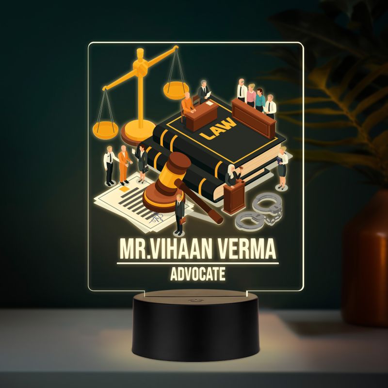 Personalized Advocate LED Night Lamp with Warm White Light Law Theme Acrylic Light for Lawyer Office Desk Decor & Gift for Advocate & Lawyer