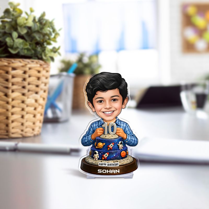 Personalized Astronaut Space Themed Bobblehead Caricature for Boys Birthday Gift for Kids, Son, Brother Tabletop Decor for Study Desk & Kids' Bedroom Battery Powered Moving Head