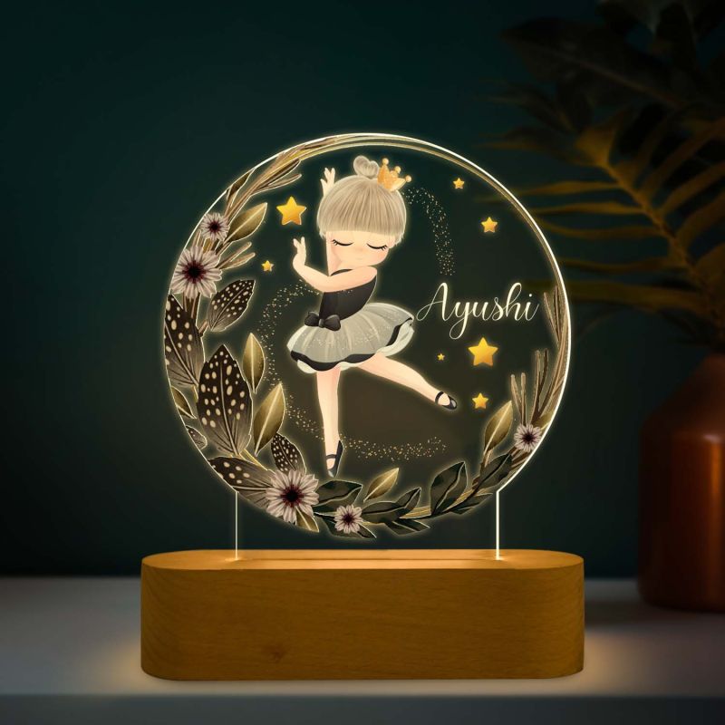 Personalized Ballerina Fairy Dancing Girl Night Lamp with Warm White Light & Wooden Stand Gift for Dancer Birthday Return Gift Girls Room Decor Light