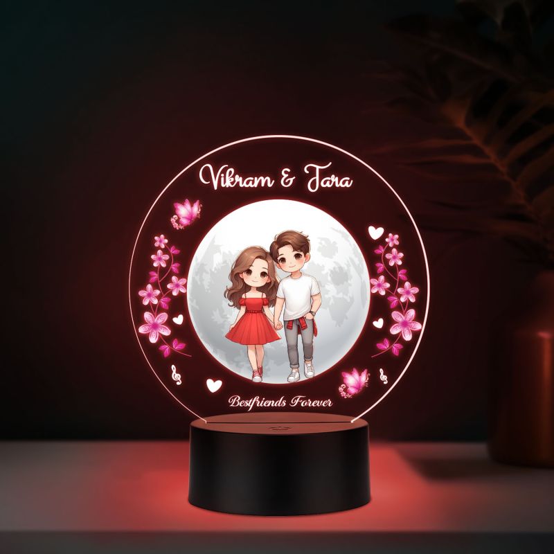 Personalized Best Friends Forever Theme LED Night Light, Custom with Names, 7 Color Changing Light Gift for Best Friend