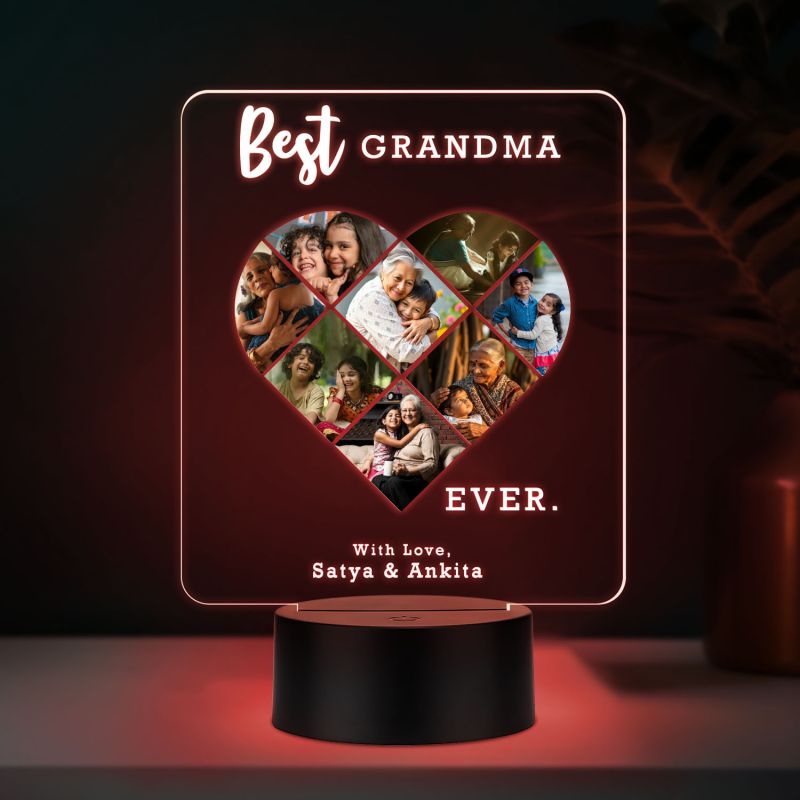 Personalized Best Grandma Ever LED Night Light, Heart Photo Collage Frame with Multicolored Light Memorable Gift for Dadi Maa