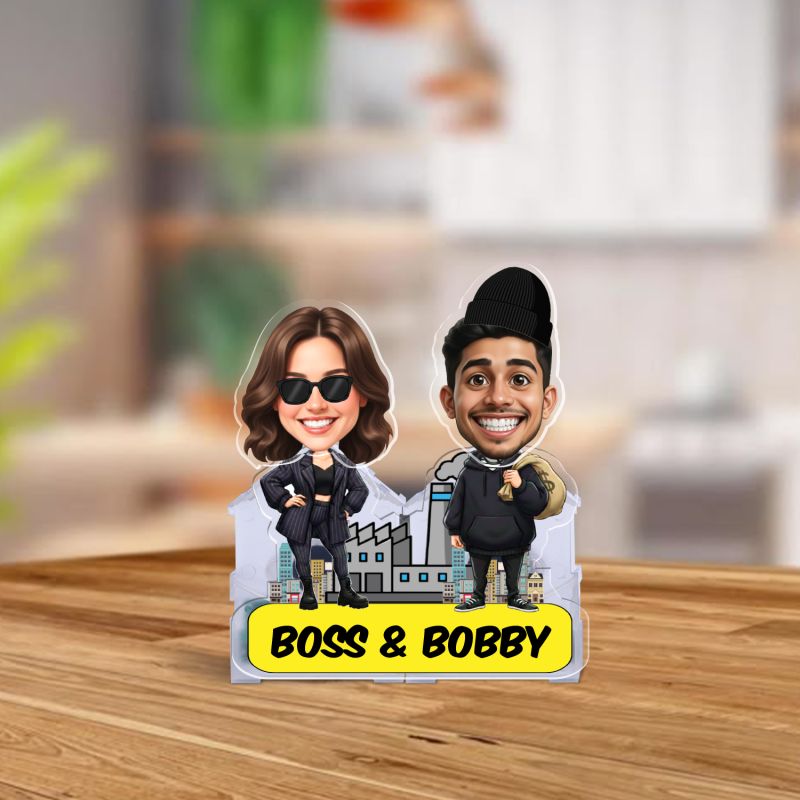 Personalized Bobblehead Caricature Custom with Face Cutout Battery Powered Moving Head for Car Dashboard & Tabletop Gift for Boss Lady