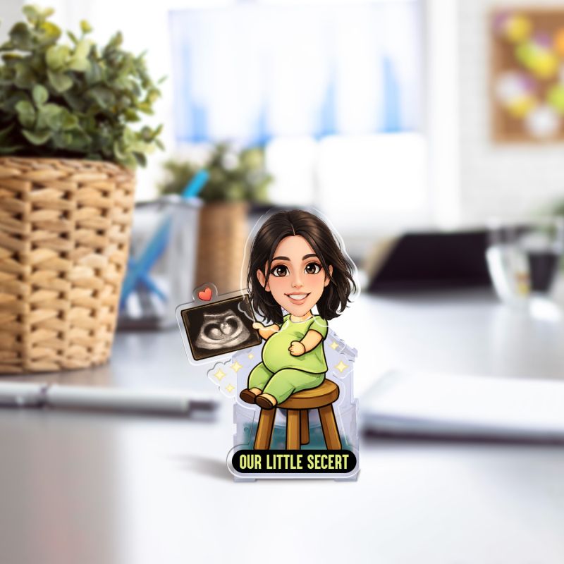 Personalized Bobblehead Caricature Our Little Secret Quote Pregnancy Gift Baby Shower Gift Gift for Pregnant Woman | Battery Powered Moving Head for Bedroom Tabletop Decor