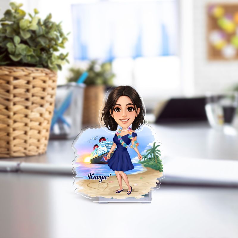 Personalized Bobblehead Caricature with Beach Theme Custom with Face Cutout & Name Birthday Gift for Girls Battery Powered Moving Head Tabletop Decor