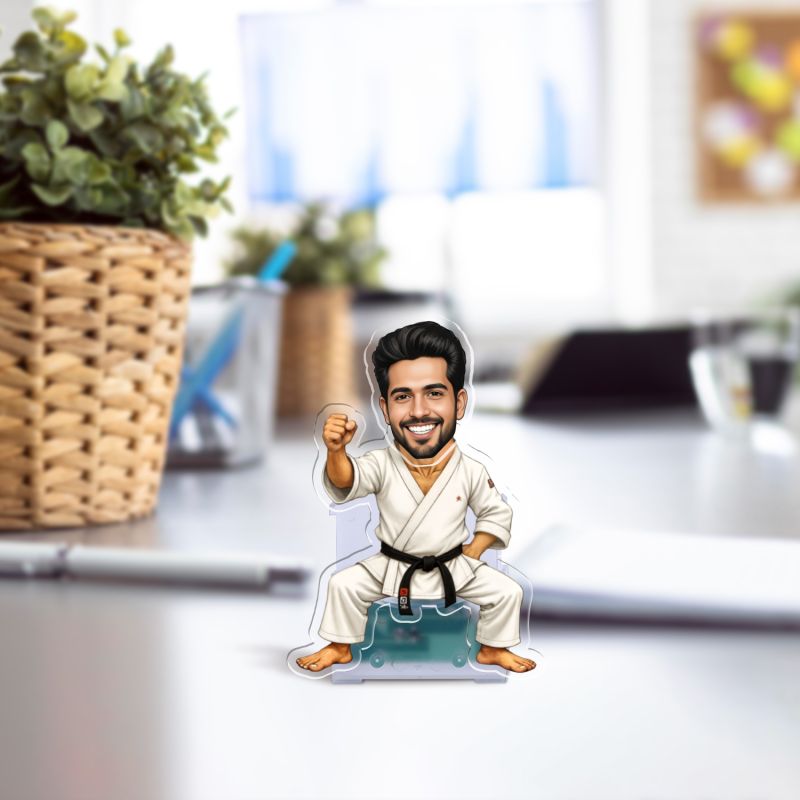 Personalized Bobblehead Caricature with Solar Powered Moving Head for Car Dashboard, Office, Home & Tabletop Decor Gift for Karate Master & Funny Gift for Friends