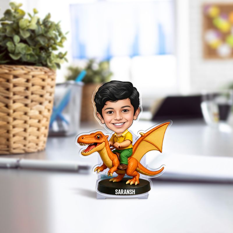 Personalized Boy on Dragon Bobblehead Caricature Standee Birthday Gift for Kids, Boys, Tabletop Desk Decor Battery Powered Moving Head Kids Room Decor
