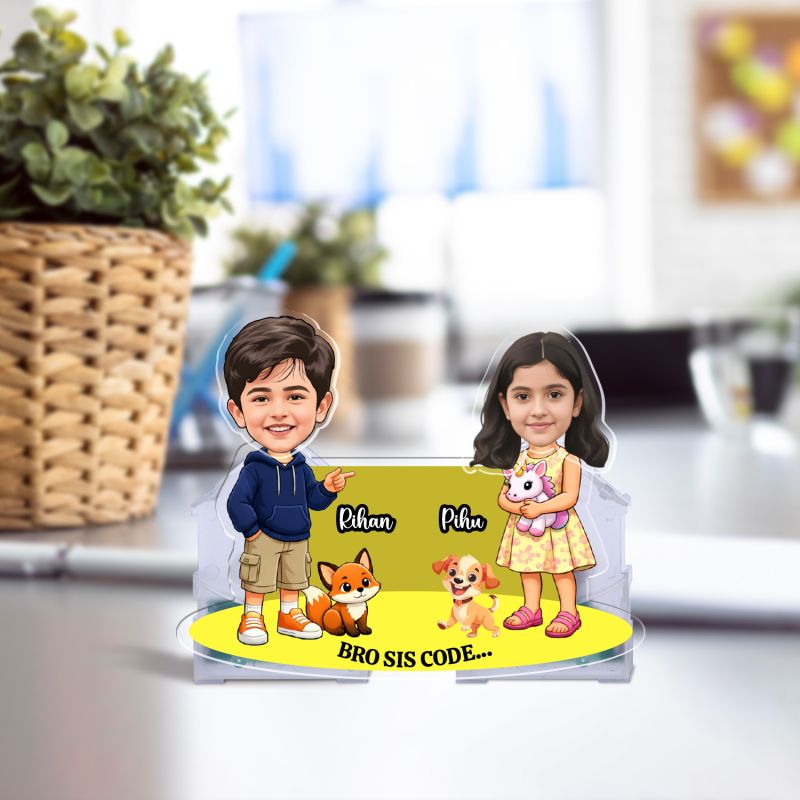 Personalized Brother & Sister Bobblehead Caricature Custom with Face Cutout Perfect for Birthdays, Raksha bandhan, and Home Decor Battey Powered Moving Head