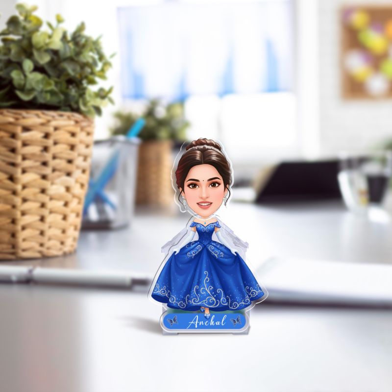 Personalized Cinderella Princess Blue dress Bobblehead Caricature Theme for Kids Birthday Gift, Kids Room & Home Decor Birthday Return Gift for Girls Battery Powered Shaking Head