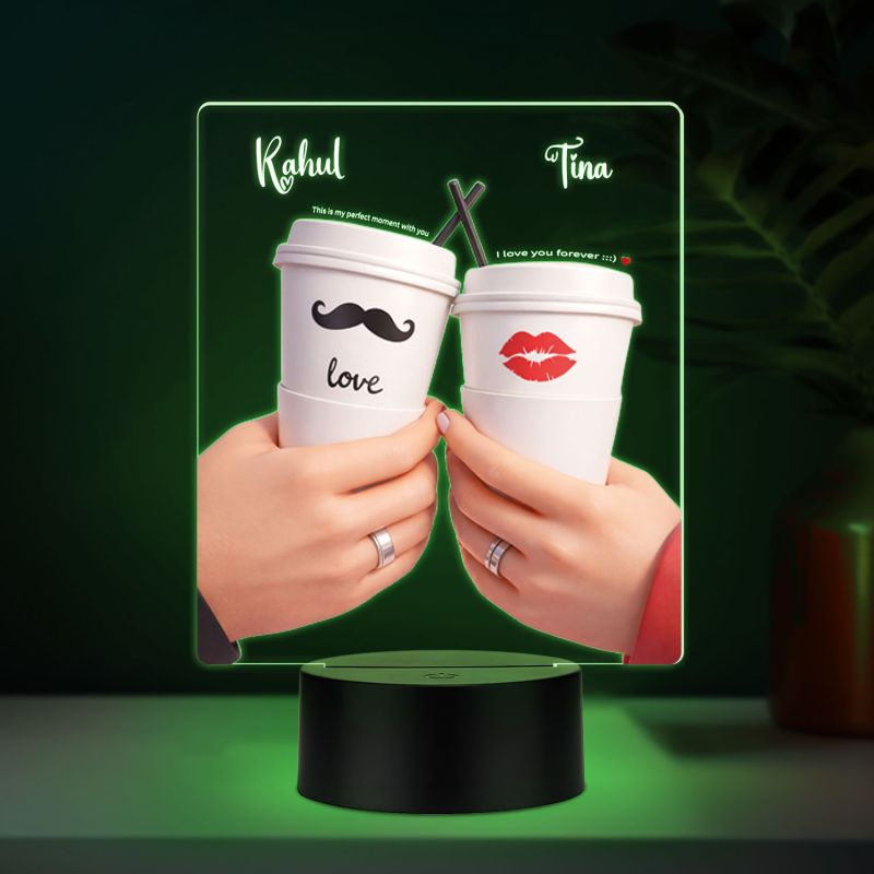 Personalized Coffee Cups Cute LED Night Light Customizable Names, Multicolor Changing Light Gift for Valentines Day, Girlfriend Boyfriend Romantic Gift