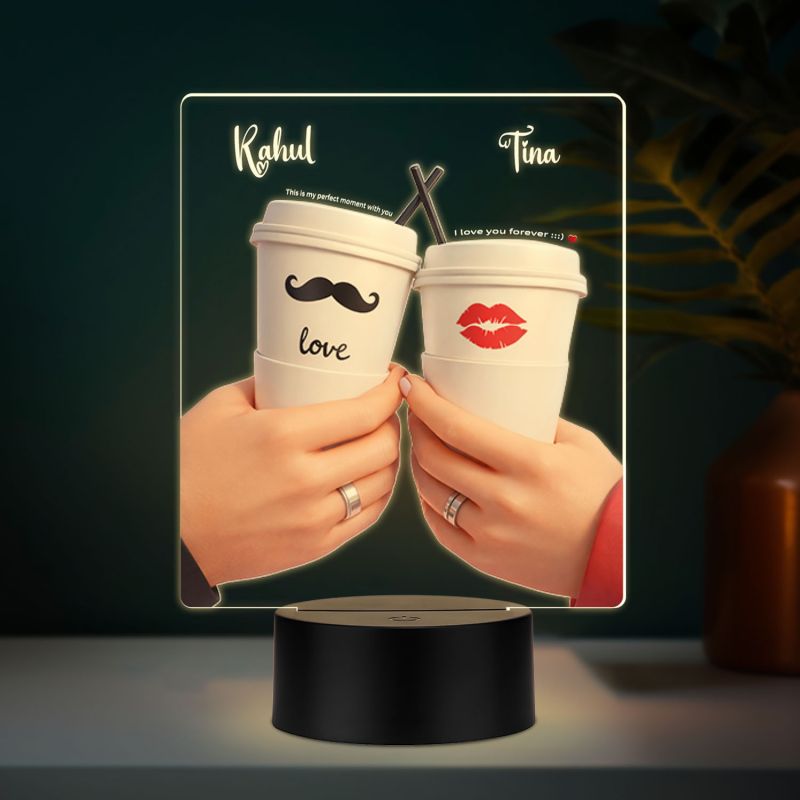 Personalized Coffee Cups Cute LED Night Light Customizable Names, Warm White Light Gift for Valentines Day, Girlfriend Boyfriend Romantic Gift