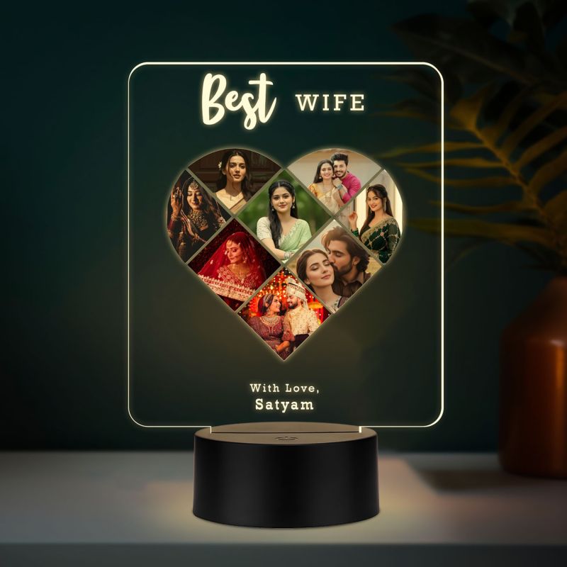 Personalized Collage Photo Frame Led Night Lamp With Warm White Light Gift For Anniversary, Birthday, Valentines Day Memorable Gift Lamp (Best Wife)