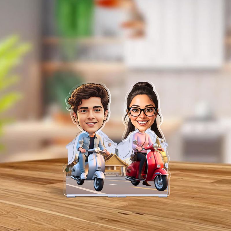 Personalized Couple Bobblehead Caricature Gift for Husband, Wife, Girlfriend, Boyfriend & Friends Solar Powered Moving Head Couple Gift for Birthday (Funny Scooter Couple)