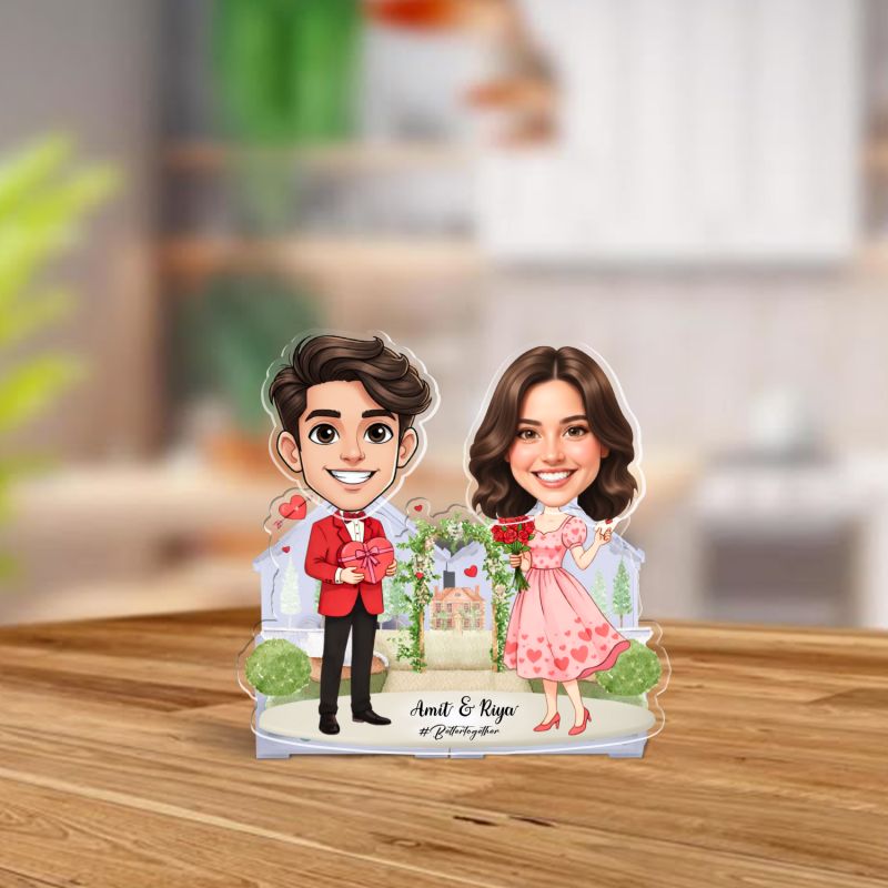 Personalized Couple Bobblehead Caricature Standee with Battery Powered Shaking Head Feature for Car Dashboard, Home Decor Gift for Valentines Day, Birthday & Anniversary