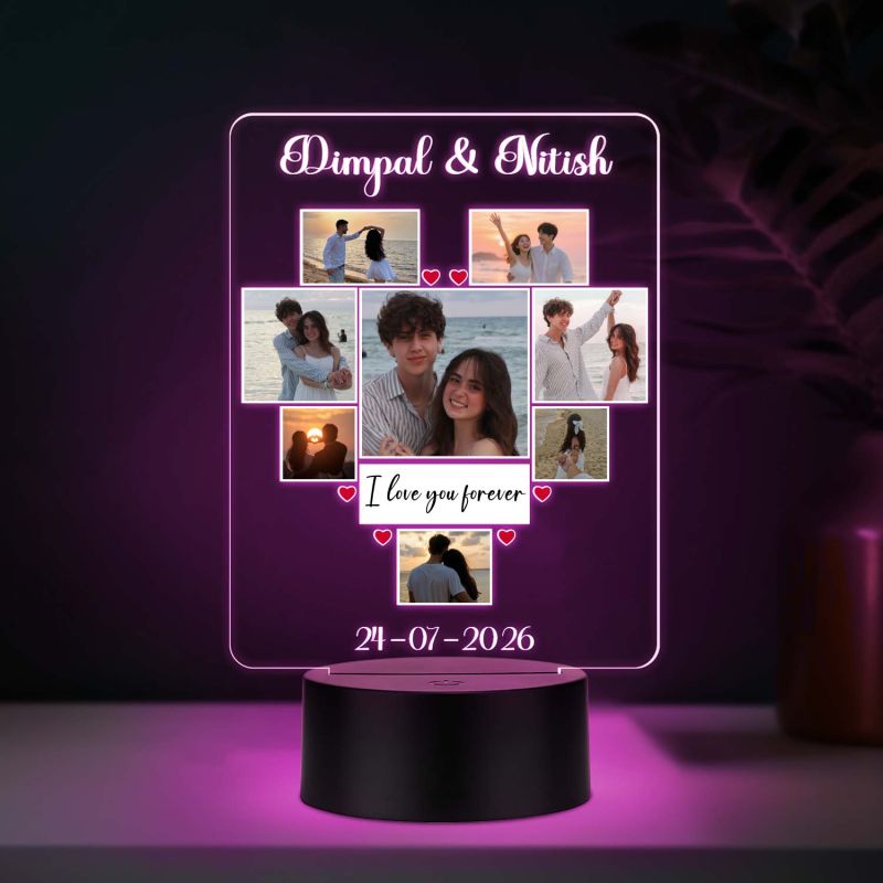 Personalized Couple Collage LED Night Lamp for Long Distance Relationship Gifts Anniversary, Valentine's Day & Wedding Gift for Husband, Wife, Boyfriend, Girlfriend (Multi)
